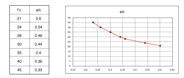 En este artículo se presenta una tabla que vincula la relación agua – cemento con la resistencia a la compresión del hormigón a 28 días de edad curado en forma estándar. Los datos se han obtenido de numerosas experiencias con agregados de diferentes regiones del país y cementos de la familia Selvalegre.